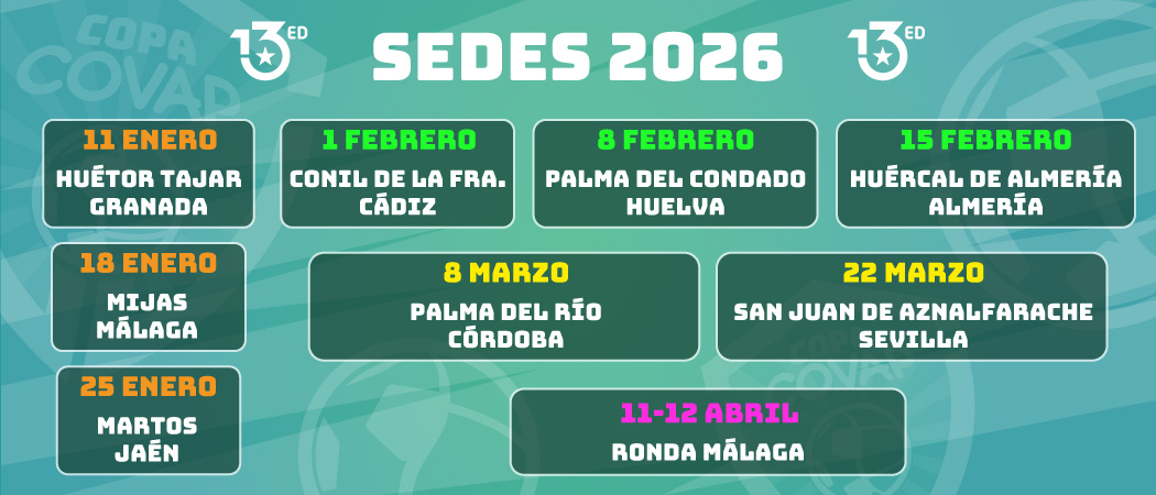 ¡Listado provisional de equipos participantes en la 13ª Copa COVAP! Sedes Huelva, Almería, Córdoba y Sevilla