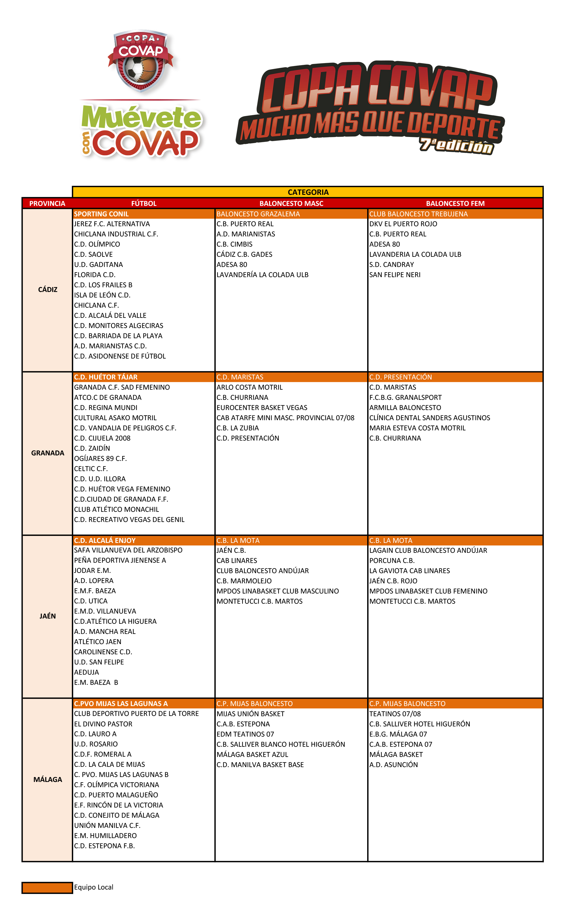 ¡Llegó el momento que muchos estaban esperando! Ya está disponible el listado de los equipos que han superado la fase de inscripción de la séptima edición de la Copa COVAP para las provincias de Jaén, Málaga, Granada y Cádiz. [Haz click aquí para verlo en .pdf].