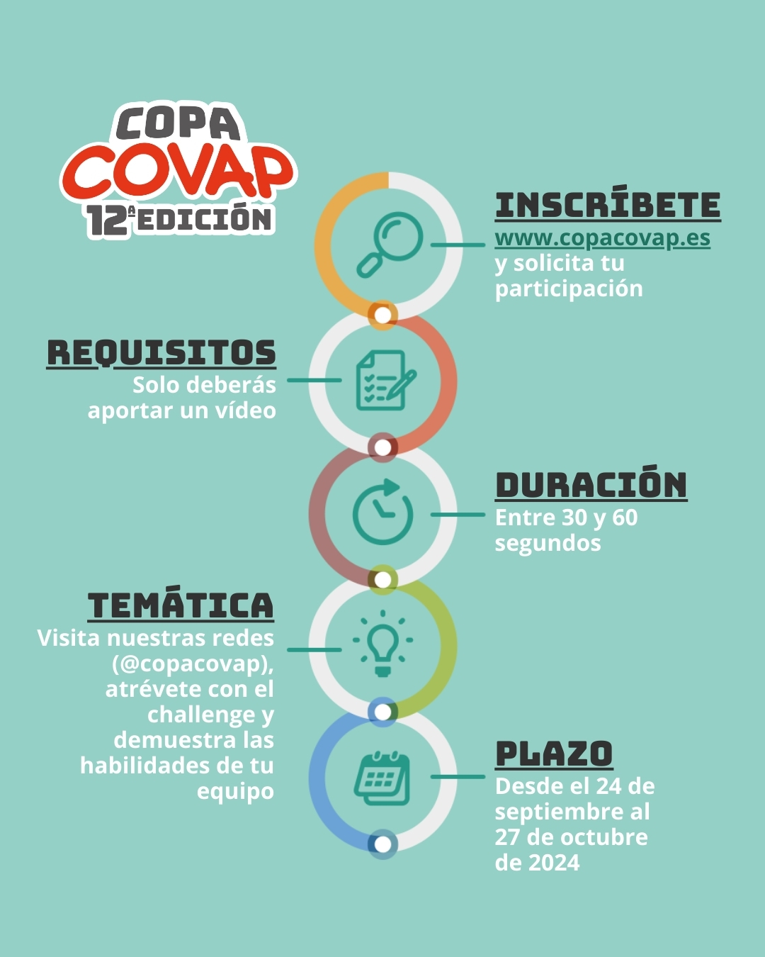 ¡Atención! Para que la inscripción sea válida debéis cumplir todos los requisitos correctamente, solo de esa manera podréis pasar al proceso de selección final. ¡Recuerda que inscribirse no implica ser ya participante de la Copa COVAP!