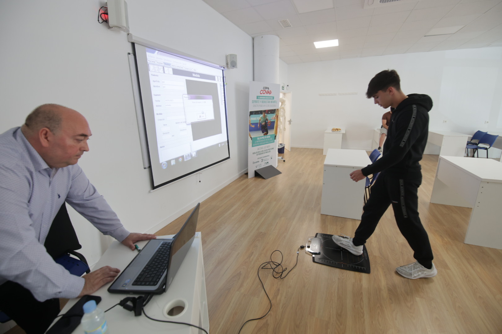 En cuanto al Colegio de Podólogos de Andalucía, el especialista Antonio Luis Mora ha expuesto la sesión ‘Pies en juego: la importancia de un calzado deportivo adecuado para la salud’, donde ha explicado la importancia de elegir unas zapatillas adecuadas en la infancia para evitar problemas en el pie en el futuro, ofreciendo ejemplos prácticos con una plataforma de presiones donde los estudiantes han analizado las diferentes pisadas.