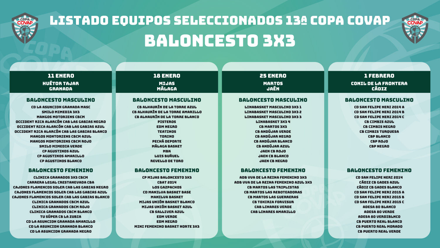 ¡Ya conocemos el listado provisional de equipos que participarán en 2026 en las cuatro primeras sedes correspondientes a las provincias de Granada, Málaga, Jaén y Cádiz!